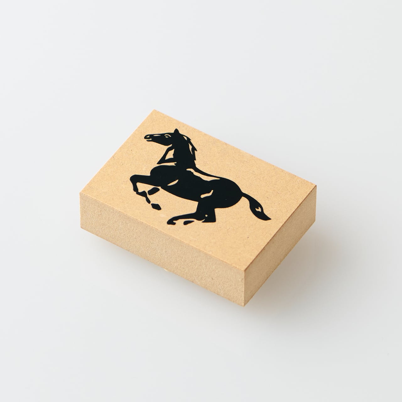 たくましい黒馬。黒いインクで一頭のレイアウトや、少し柔らかいブラウン系で複数捺しのレイアウトにも。